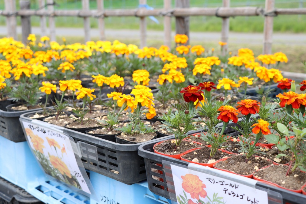減農薬栽培で生産された農作物の購入や収穫体験ができます。直売所には新鮮な野菜や卵、手作り味噌、花・野菜苗などが豊富に並びます。