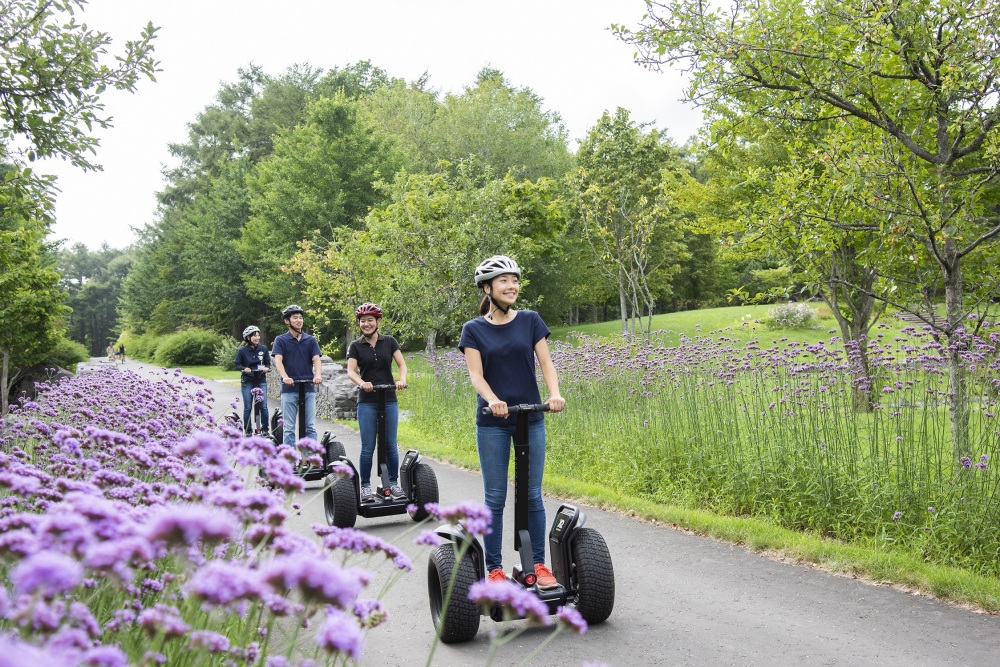 自然と触れ合えるアクティビティメニューも豊富。広さ1万坪の庭に約1,000種の草花が次々と咲くボタニカルガーデンや、セグウェイやパークゴルフなどのアクティビティも種類が豊富。ドッグランも併設され、ペットも一緒に自然と触れ合うことができます。冬にはスノーモービルやクロスカントリーなどの、スノーアクティビティが登場。一年中、北海道の大自然と戯れることができます。